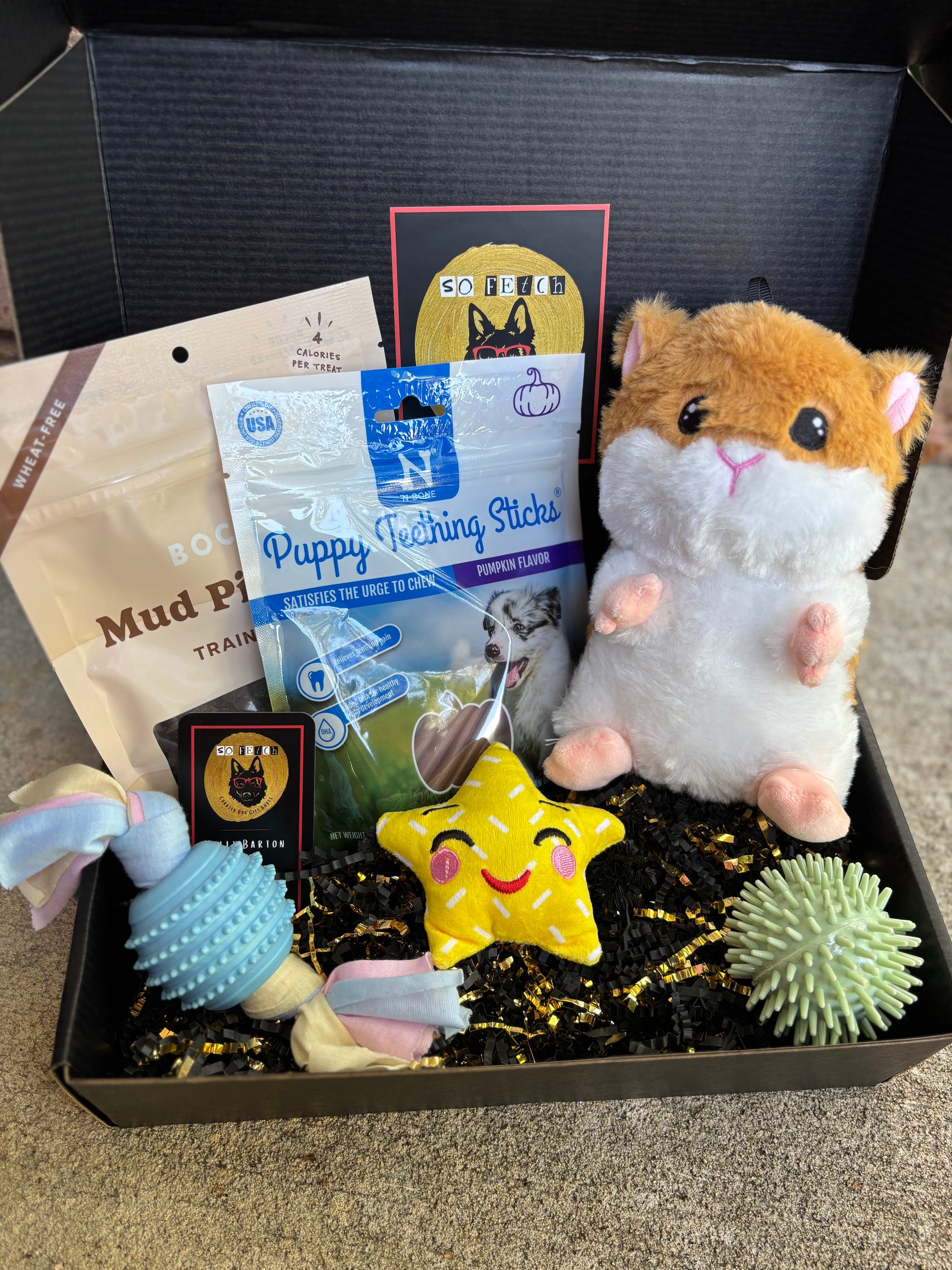 We want your new puppy to feel right at home as soon as you bring them into the family! Each box contains hand-selected toys and treats for your dog. We strive to make every dog feel like they are the best pup in the world! When you place an order with us, we customize the box to make sure it’s a special experience for you and your dog!